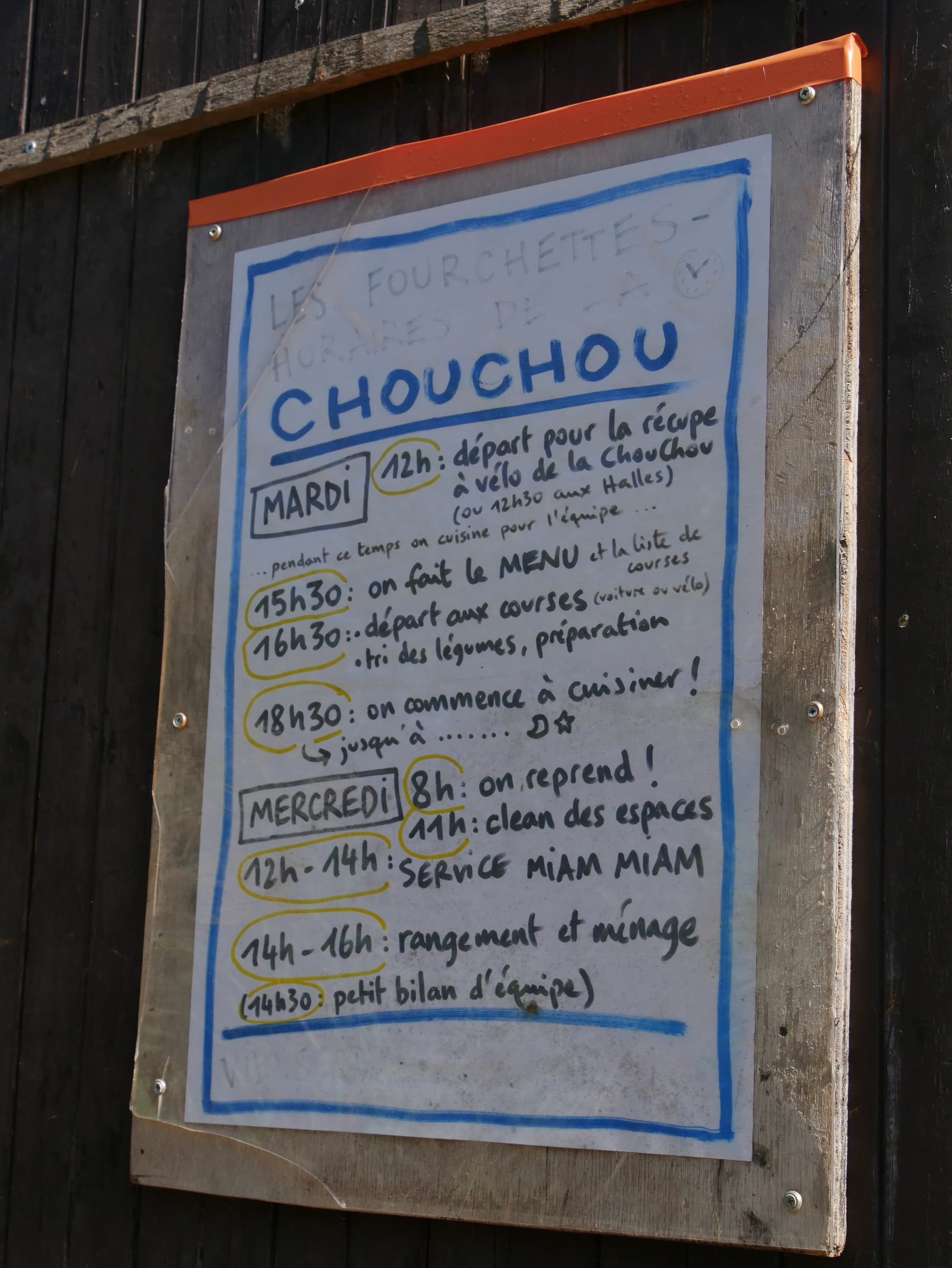 À 13h12, la criée a lieu et nous lisons à voix haute les petits mots inscrits par les personnes venues manger. Des mots doux pour les volontaires de la Chouchou, des annonces d’événements ou encore un efficace « Ciao Marine ».