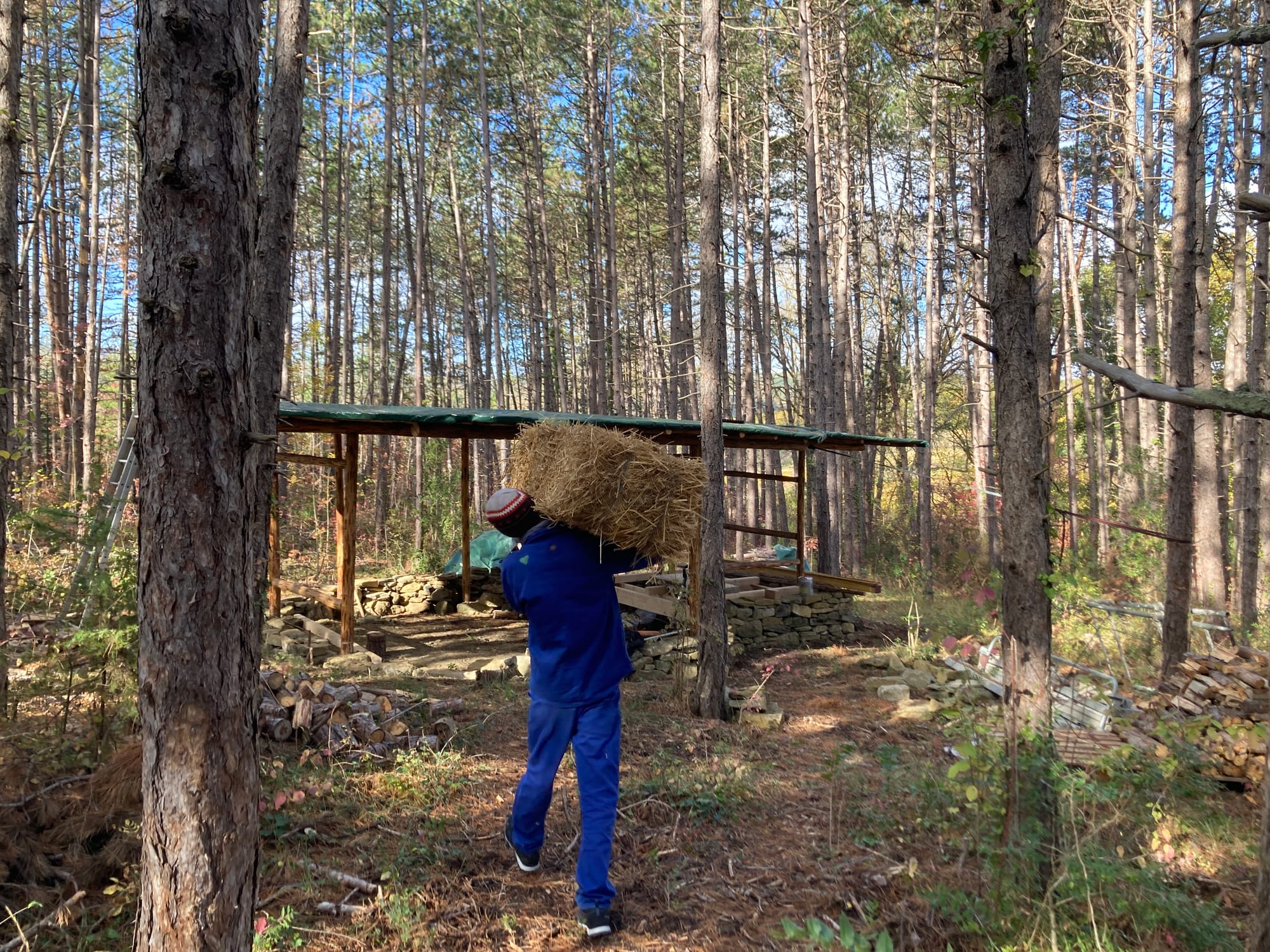 Nous revoilà donc chez Stéphane et Nancy à la Sauzède. Au programme en première partie : construction d'une maison en paille/bois chez Walter !