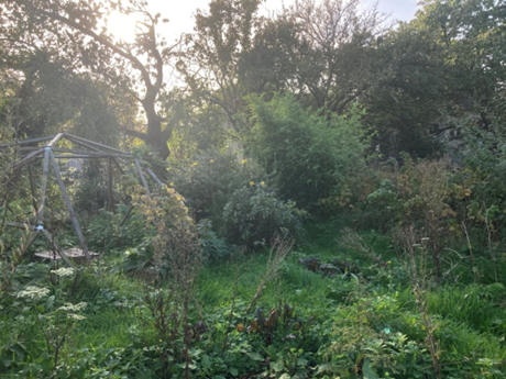 Derrière la maison se trouve un magnifique jardin entretenu par Gauthier, salarié de l’association. Des ateliers y sont régulièrement organisés pour divers publics. J’y ai mangé des figues en parlant de maraîchage et en observant les curieuses poules à huppette.